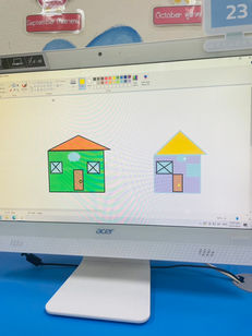 นักเรียนได้ฝึกทักษะการใช้จินตนาการ โดยเริ่มจากการฝึกวาดเส้นเป็นรูปทรงพื้นฐาน เช่น วงกลม สามเหลี่ยม และสี่เหลี่ยม จากนั้นจึงพัฒนาต่อเนื่องไปสู่การสร้างสรรค์ภาพวาดโดยการนำรูปทรงต่าง ๆ มาประกอบกัน พร้อมทั้งระบายสีเพื่อเพิ่มความสวยงาม